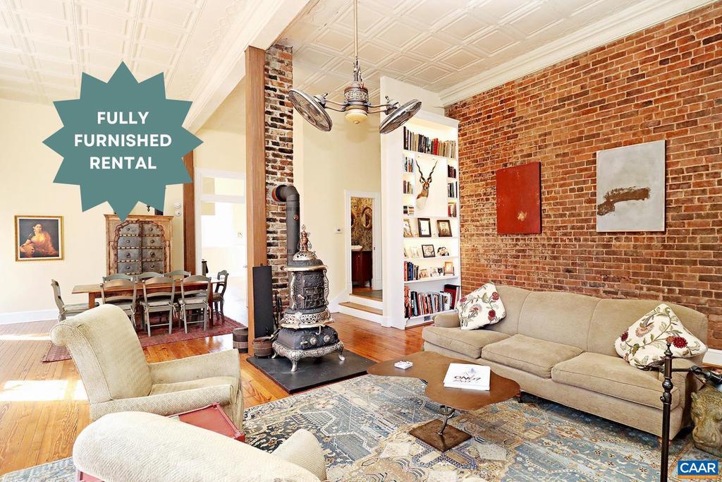 Move-in Ready! This fully furnished, historic 4 bedroom, 3.5 bath Ivy home is available with a 3-month minimum lease. Once a 19th-century train depot and general store, this beautifully restored home blends historic charm with modern comfort. Located on nearly an acre and just 8 miles from the University of Virginia, the home features soaring 14-foot tin ceilings and exposed brick for a SoHo-style loft feel. Heart pine floors and oversized windows add character and light. The gourmet kitchen boasts a French La Cornue range. The primary suite includes a walk-in closet and a spa-like bath with a soaking tub and two-person shower. A separate guest bedroom has its own en suite bath and entrance. Two spacious home offices with private entrances make working from home easy. You'll also find a mudroom, an upstairs den, a second-floor porch, and a large backyard. The home is in the desirable Murray Elementary/W Albemarle school district and is walkable to local spots like Duner's Restaurant and the Ivy Corner Garden Store. It's also just five minutes from Birdwood Golf Course and Boar?s Head Resort. *The home is also available unfurnished, with only lawn care included for $5,000/mo. A long-term lease commitment would be required.