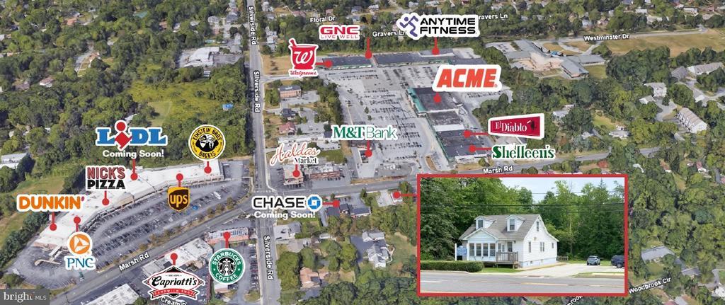 Excellent visibility and frontage on Marsh Road, with high traffic counts exceeding 18,000+ VPD Ideal for small-scale, high-margin users such as medical, dental, financial services, technology, specialty office, retail store or a redeveloper Built-in demand and cross traffic with Branmar Plaza In proximity to I-95 Population - 9,413 (1 Mile) 81,199(3 Miles) Households - 3,738( 1 Mile) 33,391(3 miles) Median Age-49 ( 1 Mile) Median HH Income-$130,498(1Mile) $108,030(2Miles) Daytime Employees- 3,094(1Mile) 42,522(2Miles)