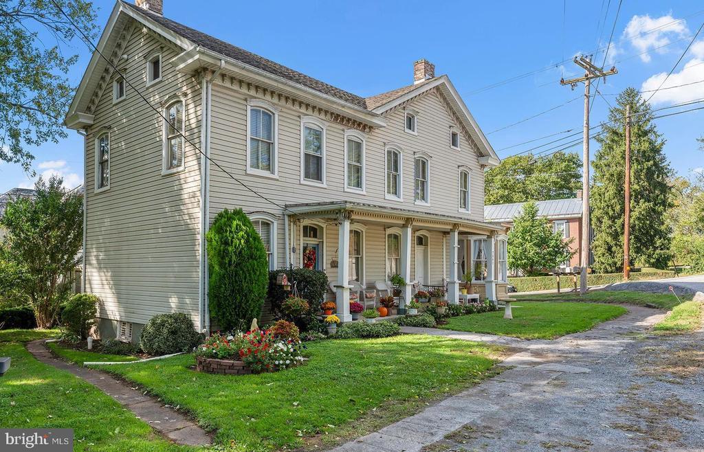 7541 Middleburg Rd is a once in a lifetime opportunity to own a large Victorian that maintains all of its original charm while providing you with the desired updates of today and commercial zoning opportunities. Previously a hotel, this expansive 4BR/3BA home has all of the bespoke features you could want, from the grand central staircase, high ceilings, tall original windows, custom molding and trim, combined with modern amenities like central air conditioning, an updated kitchen, and 3 full baths. The front porch leads you to the large foyer, immediately surrounding you with thoughts of yesteryear and the grandeur this residence has preserved. The large dining room features an elegant bow bay window, plenty of room for large table space and perfect for entertaining. It shares a dual entrance to the back staircase with the kitchen, which features a cozy pellet stove, center island, updated cabinetry and butcher block counter tops, stainless appliances, and table space, perfect for eat in casual dining. Off the kitchen is access to the first floor laundry room, and butler's pantry/wet bar access perfect for additional storage and making entertaining a breeze. Through the butler's pantry is a perfect office space with access to the updated, first floor full bath with walk-in shower. Off the office brings you back to the front of the home into the formal living room/sitting room with propane fireplace and lots of windows overlooking the front porch and access to the foyer. Upstairs, the landing wraps the whole way around the staircase with a beautiful banister, to a small sitting area or reading nook at the front of the home. Two large bedrooms with high ceilings and beautiful original woodwork flank one side of the hallway, and a full bath with shower/tub combo and large walk-in closet with access to extra storage sits at the top of the stairs. The primary bedroom is accessible directly from the main hall, but also from its own hallway. With its own dedicated closet space, beautiful hardwood floors, and plentiful oversized windows, it is truly a beautiful, peaceful space. The back hallway also provides access to the large, walk up attic, and the secondary staircase down to the kitchen/dining rooms. There is an additional fourth bedroom and large bathroom with iconic claw foot tub. This entire side of the home could be blocked off to provide an expansive primary suite, and the fourth bedroom could be converted into an office, nursery, walk-in closet, sitting area... the options are endless. Outside, the flat lot provides shade from mature trees and a peaceful space for sitting outdoors. The porches on both sides of the home provide that small-town feel that you'd expect in Detour - just minutes from Keymar, Libertytown, and convenient to Frederick, Taneytown, and Littlestown. Set just steps from Big Pipe Creek, Double Pipe Creek Park, Prosperity Mansion and Farm, and other local attractions and venues, this special setting provides opportunity for a variety of home business or commercial uses as well. Buyer to verify all zoning and usage requirements with county, but this property is zoned Residential/Commercial! Let your dreams take shape with a wonderful nod to the past on Middleburg Rd.