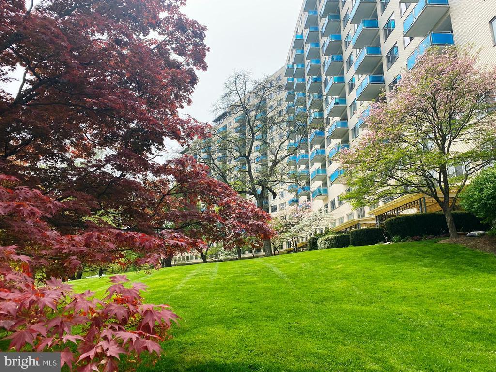 Patio unit with 2 large bedrooms, 1 den, and 2 small baths. Lush green lawn, a pond, and a pedestrian footpath. The patio offers added space, privacy, and fast ingress and egress! The den (about 70 sqf) can accommodate a twin bed, a desk, plus a small shelf space. The kitchen has a granite countertop, gas stove, and a drinking water filtration system! Refinished hardwood floors in living and dining areas and inside one bedroom, and carpet in the master bedroom. No complaints as to jumping around and no potential liability to any lower floors as there are none. A secluded hallway with just 1/2 of the foot traffic compared with other floors as there are no units on the opposite side. No need to wait for elevators. No traffic noises from 355 and 270. No big swings in daily temperature with morning sun exposure. Quiet and nice neighborhood. The Metro station is just steps away. One indoor garage parking is included and ample free parking for residents and guests on the surface lot. 24-Hour security. The gym, laundry room, garden/party/library room, and bike room are all on the same level! Private swimming pool and picnic/BBQ area. Award-winning Grosvenor Market is located at the next building. Public schools here are Ashburton Elementary, North Bethesda Middle, and Walter Johnson High. Minutes to NIH, USU, and 20 minutes to DC by Metro. Condo fee covers All UTILITIES and the indoor garage assessment! The unit is pre-wired for Verizon FIOS and Comcast Xfinity. The building allows house cats, and documented support animals are okay too. This is a smoke-free building.