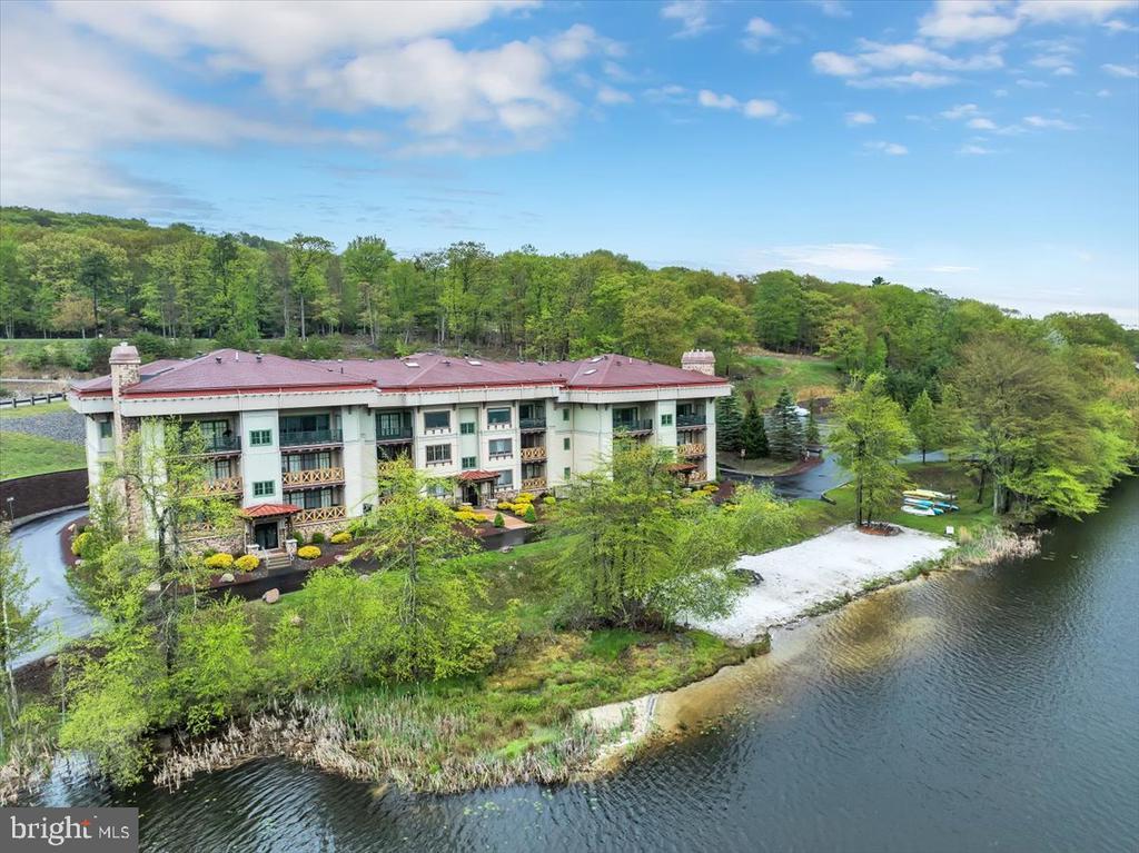 Discover a unique opportunity to own a stunning 3-bedroom, 3-bath end-unit condo located right on Big Boulder Lake, offering breathtaking views of Big Boulder Ski Resort. Situated on the third floor within the secure Boulder Lake Village, this condo combines convenience, comfort, and captivating scenery. Upon entering this unit, you’ll be impressed by the remarkable two-story Great Room, featuring an electric fireplace and access to a spacious deck with panoramic views of Big Boulder Lake and Ski Resort. The open-concept layout seamlessly connects the Kitchen, Dining Area, and Great Room, creating a welcoming space for relaxation and entertainment. The Kitchen is thoughtfully designed with stainless steel appliances, granite countertops, a dry bar, and a pantry closet. The main floor hosts the Primary Bedroom, complete with an en suite bathroom and sauna, as well as a private deck. There is a second bedroom, access to a hall bathroom and a handy hall washer/dryer closet.. Upstairs, the loft overlooks the Great Room, offering a versatile space alongside a third bedroom and an additional full bathroom. Each unit also comes with a secured storage space located on the basement level. Boulder Lake Village residents enjoy access to a private beach area, offering a unique opportunity to experience the beauty of the Pocono Mountains. Please note that short-term rentals are not permitted in this condo building.