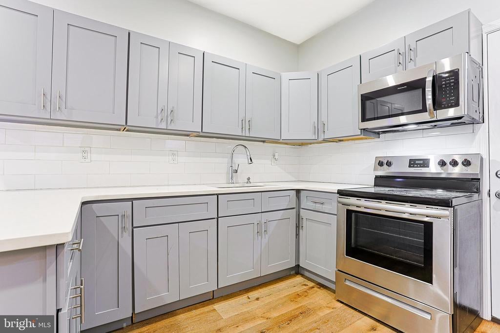 Welcome to 1422 S Vogdes Street! Tucked between Chester and Springfield Avenues on a small Kingsessing block, this fully renovated 3-bedroom, 2-bathroom row home with a finished basement and spacious back patio is move-in ready. Step off the front porch into an open-concept main level where large windows fill the space with natural light. The living and dining areas flow seamlessly into a modern kitchen featuring brand-new stainless steel appliances, gray shaker cabinets, and white quartz countertops with a waterfall peninsula — perfect for casual dining. Just off the kitchen, enjoy access to a fenced-in back patio, ideal for relaxing or entertaining in the warmer months. Upstairs, on the 2nd Level, you'll find two well-sized secondary bedrooms with generous closet space and a full hallway bathroom with stylish tile flooring and classic subway tile. The primary bedroom sits at the front of the home and boasts bay windows, a spacious closet, and a private en-suite bathroom. Downstairs, the fully finished basement offers versatile space that can be used as a den, playroom, home office, or guest area. Conveniently located near public transit, local shops, and dining, this home combines comfort, style, and accessibility. Schedule your tour today! * Available for August 1st move in. First month, last month and security deposit due at lease signing. Pets allowed on a case by cases basis. If approved there will be a $500 non-refundable pet deposit also due at lease signing.*