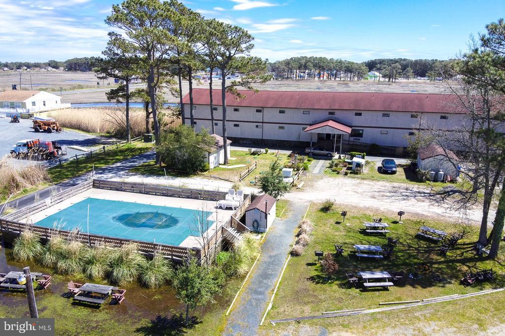 Welcome to this beautifully renovated 2-bedroom, 2-bath waterfront double efficiency unit at the Assateague Inn. This unique property seamlessly combines two efficiency units connected by an adjoining door, offering convenience and privacy. Both units feature a shared kitchenette equipped with a modern tile backsplash and microwave, perfect for quick and easy meals. The entire space boasts sleek LVP flooring, lending a modern and clean aesthetic. The main area includes a sink with vanity and a full bathroom, ensuring comfort and convenience. The adjoining unit offers a spacious second bedroom with private access from the outside, ideal for guests or personal use. Each unit is equipped with its own separate heating and air conditioning system, allowing for individual climate control. Enjoy picturesque waterfront views and the convenience of a dock, perfect for nature enthusiasts. There is also an outdoor pool for relaxing on those hot summer days! Located in proximity to charming island shops, delightful dining options, the natural beauty of the refuge, and stunning beaches, your retreat awaits!