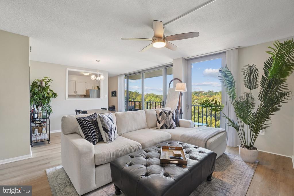 Welcome home to this light filled 8th floor condo featuring brand new luxury vinyl plank flooring and fresh paint throughout. The spacious living room showcases floor to ceiling windows and a sliding glass door leading to a private balcony with peaceful views of the Four Mile Run trail and stream.