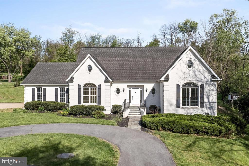 Custom, all-brick white rambler with a French Country ambience, enjoys boundaries of a lovely brook and a berm of boulders and indigenous plantings that obscures property from the roadway. All rooms are generously sized with the main level suitable for one-level living with Primary bedroom and laundry. Bedrooms on upper level are large enough for additional sitting area or study furnishings. Enjoy the brook as your own natural water feature from the Juliette balcony in the Primary suite or from the deck and gazebo .