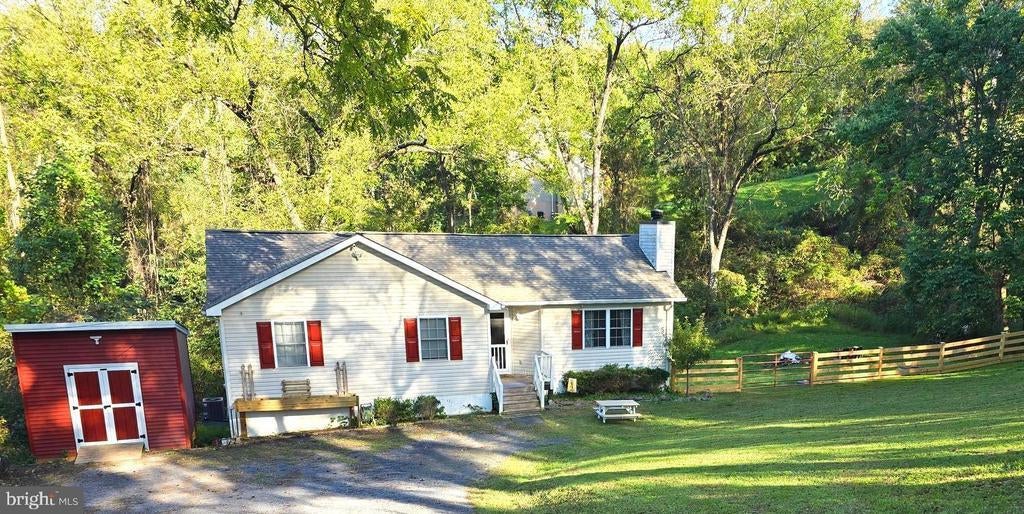 Great location in private Apple Mountain Lake community, just a few minutes to I-66. FULLY FENCED BACKYARD as part of 1.1 acre lot. * Newly re-finished Hardwood floors, tile kitchen floor, vaulted ceilings, wood burning fireplace, granite countertop in kitchen. 3 Bedrooms and 2 full bathrooms on main level. Lower level is mostly unfinished EXCEPT for 1 additional room with full bathroom. Large 12x12 shed and plenty of other "storage". Owners are in the process of packing/moving/cleaning/fixing etc!! -- but will try to accommodate showing requests with advance notice. Walkout basement, sits on quiet cul-de-sac, lake privilege, walking distance to playground. It's semi-country living, near Front Royal attractions, wineries, and beautiful views!